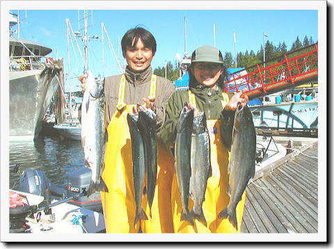 バンクーバー近郊のバーナビーにお住まいの二宮様ご夫妻。カナダには8月下旬にいらっしゃったようで、週末はあちらこちらと散策されているようです。今回はクアドラ島へカヤックのツアーがてらに、サーモンフィッシングにも挑戦して頂きました。 前夜は雨模様だったものの当日は快晴。釣り場到着直後からアタリが連続して起きる入れ食い状態。「ホレきた!」「今度はそっちの竿!」「オッ、また来た!」と忙しく朝の数時間を楽しんでいただきました。 今年はピンクサーモンの当り年のため多くの皆様に船上で忙しい思いをして頂いております。 ![]() |